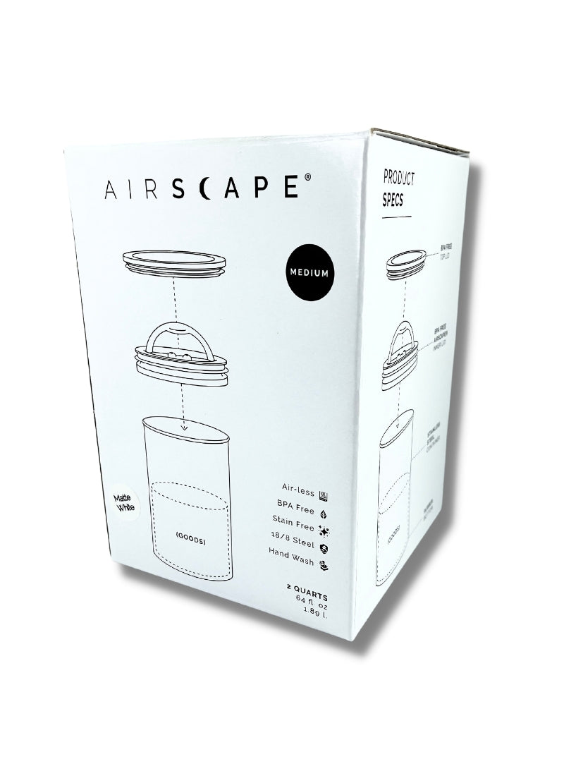 Original Airscape coffee & food storage canister with patented plunger lid removes and locks out air and humidity. Patented two-way valve pushes out excess air to preserve & protect freshness & flavor.