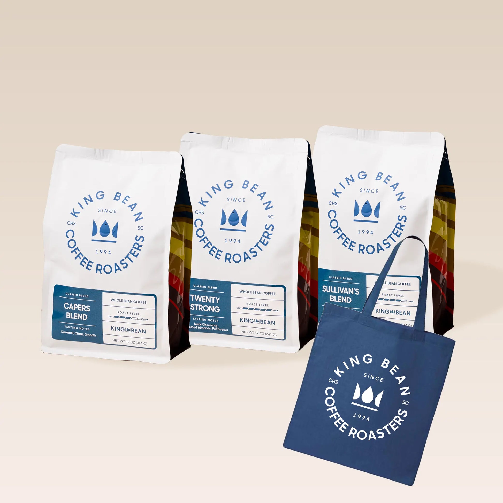 Save 13% on a trio of classic King Bean Roasts and get a free tote bag!